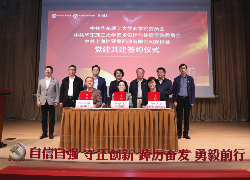 圖片說明:商學(xué)院黨委、藝術(shù)學(xué)院黨委與培羅蒙黨委共同簽署黨建共建協(xié)議