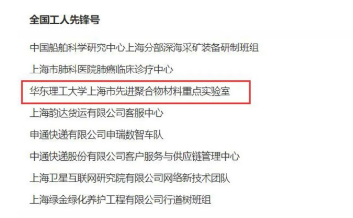 上海市先進聚合物材料重點實驗室在上海市政府支持下,依托華東理工大學,發展成為國內先進聚合物材料研究的領軍機構。固定人員43人,其中高級職稱39人,老中青三代科技創新梯隊結構合理,充滿活力。團隊曾獲上海市工人先鋒號(2022)、上海市第十一批勞模創新工作室(2021)、上海市巾幗文明崗(2020)、上海市教育系統三八紅旗集體(2018)等榮譽稱號;獲評上海市五一勞動獎章1人(2016),上海市三八紅旗手2人(2016、2018)。