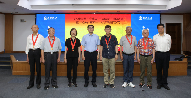 6月24日上午,學校舉行慶祝中國共產黨成立103周年老干部座談會暨“光榮在黨50年”紀念章頒發儀式。校黨委書記蔣傳海為沈偉國、蔣文文、馮幼乾、吳小敏、王才龍、王耀先等6名老黨員代表發放了“光榮在黨50年”紀念章。校黨委副書記沈海濤主持座談會。黨委辦公室主任侯宇、離退休工作處處長熱核參加活動。