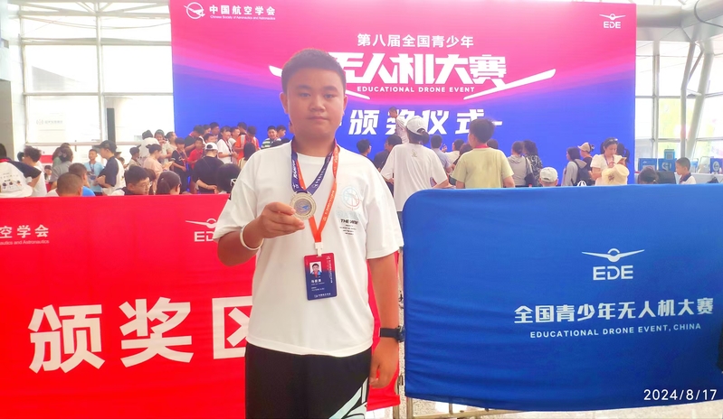 圖片說明:尋甸學生馬臣淏榮獲全國青少年無人機大賽二等獎